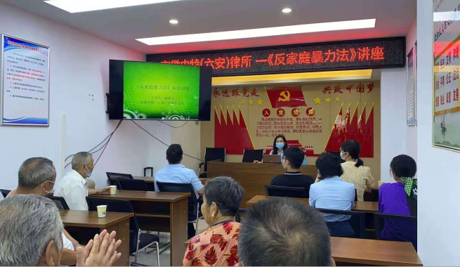 为加强反家暴法宣传力度,增强居民反家暴意识,安徽中特(六安)律师事务所联合六安市法学会,来到东市街道淠河社区开展“反家庭暴力法”法律知识讲座。