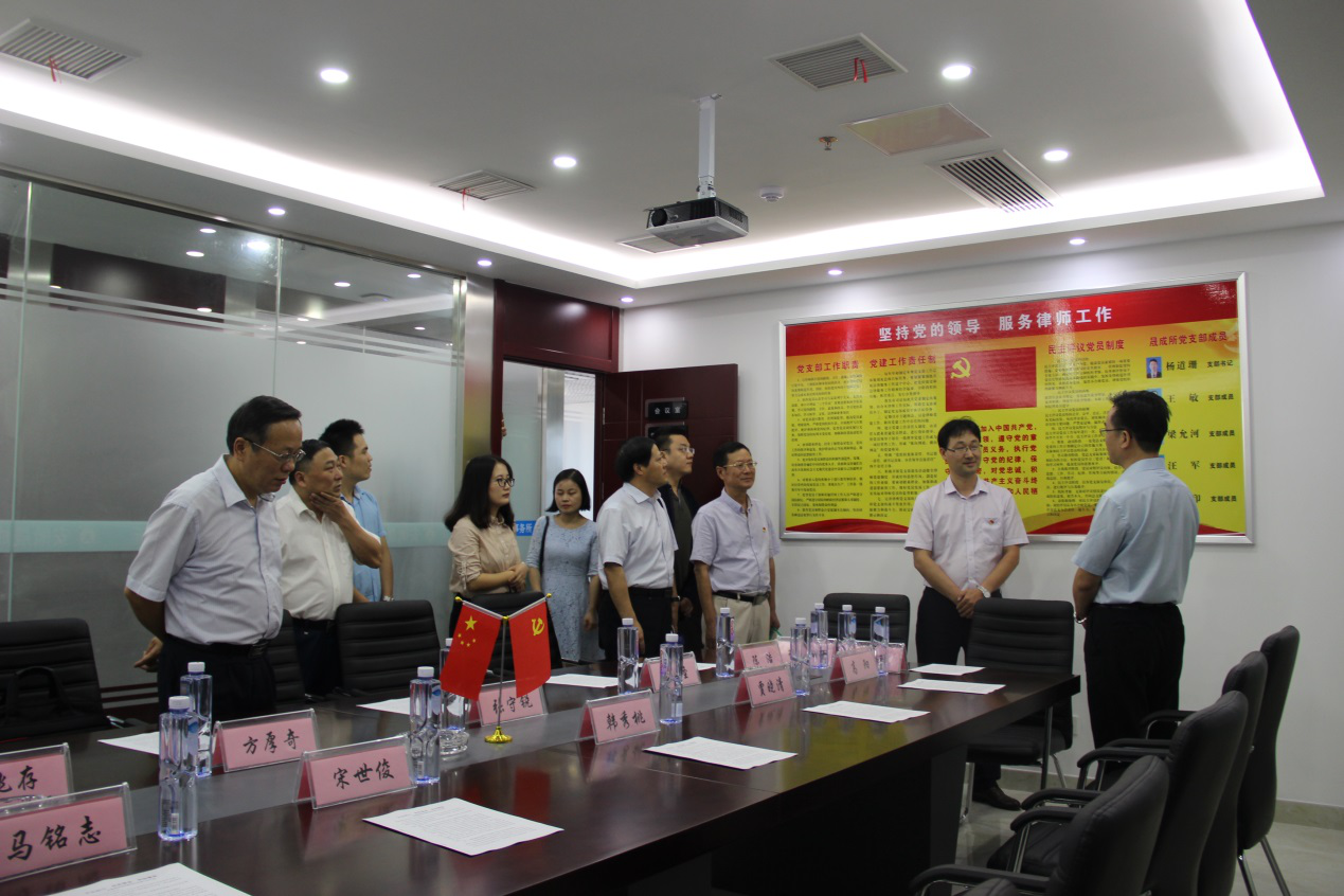 韩秀桃秘书长一行实地参观了律师事务所,认真听取了律师事务所主任王敏的工作汇报和支部书记杨道珊律师的党建工作汇报。详细了解了律所党组织在律所管理中的功能和作用、党员律师在办理案件中的模范作用的发挥情况、党组织活动创新等方面的问题,并与年轻党员律师就律所党建工作进行了深入交流,并召开了座谈会。