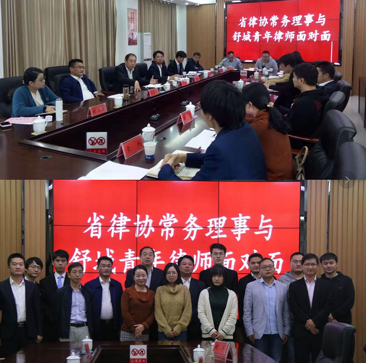 下午三点钟,两场面对面的交流在舒城县司法局同时展开。省律协副会长陈晨,省律协常务理事、六安市律协会长李国圣、舒城县司法局局长王涛与舒城县青年律师面对面交流,青年律师们不掩饰、不讳言,与省律协常务理事面对面,就案源、成长、执业等一一提问,陈晨、李国圣等鼓士气、谈底线、讲经验、叙体会,手把手帮助青年律师梳理问题、建立规划、指引路径。局长王涛也表示,县司法局将大力扶持和培养青年律师,不仅要培育人才,更要留住人才。交流直接坦诚、气氛活跃愉快。